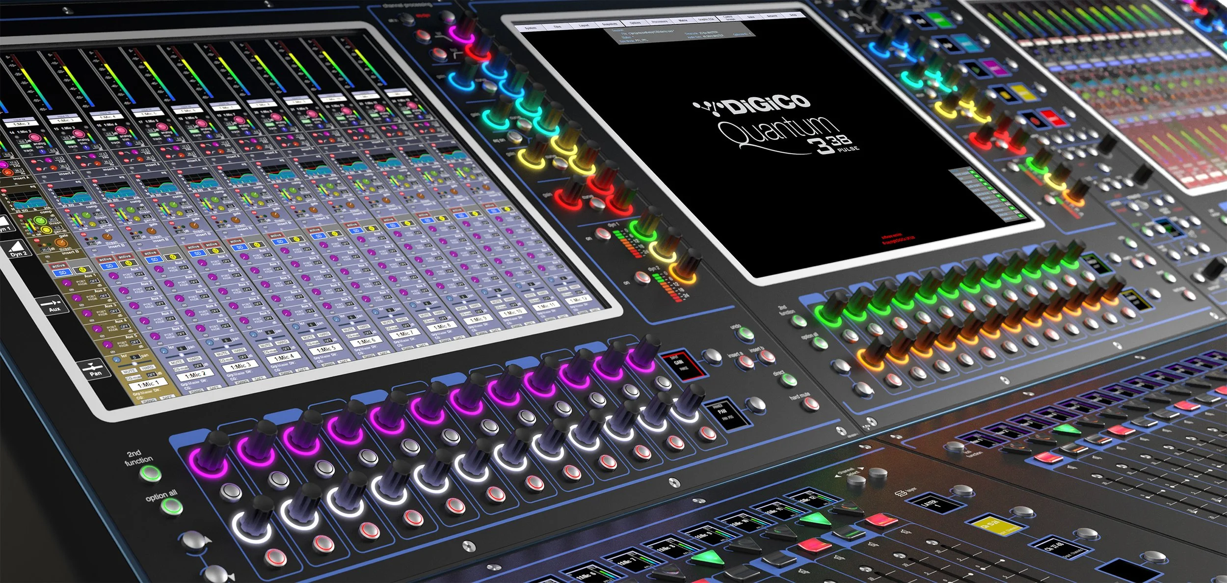 The DiGiCo Quantum 338 Pulse is a 156 channel mixing console with 38 physical faders and 3 x 17” LCD high-resolution touchscreens. Building on the Quantum 7, the Quantum 338 offers all of the Quantum features plus new design features and enhancements in a smaller format console.